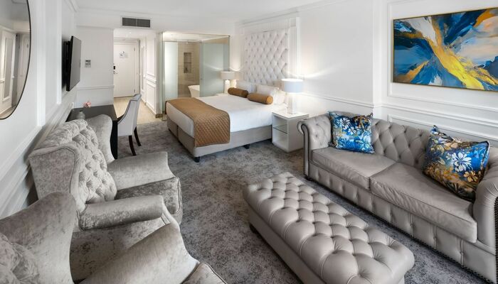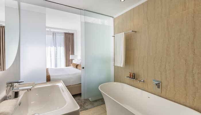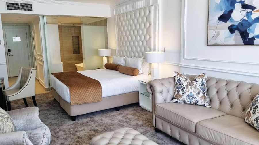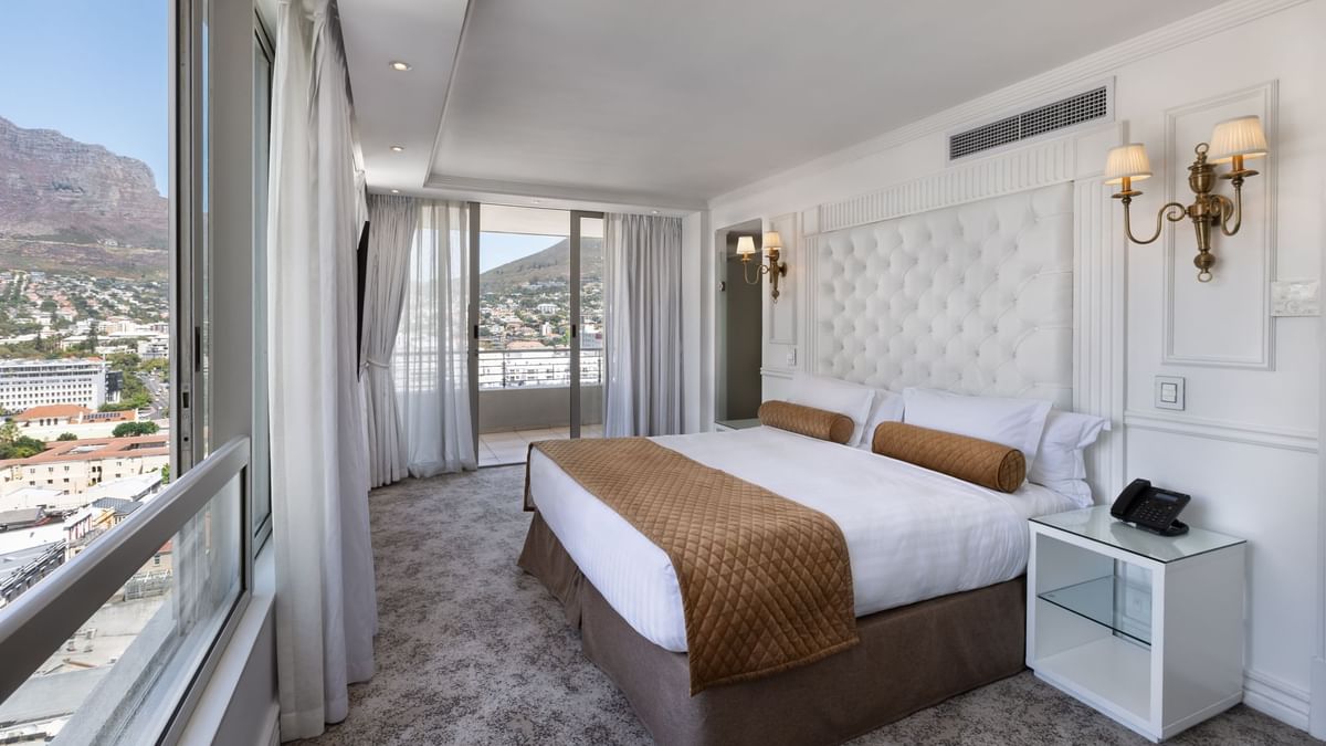 Las habitaciones Superior Deluxe son espacios diáfanos de 40 m² (431 pies²) que cuentan con una cómoda cama king, una acogedora sala de estar con sofá cama y un amplio baño privado con bañera, ducha o ambas. Algunas de nuestras habitaciones Superior Deluxe tienen balcones con vistas a lugares emblemáticos de Ciudad del Cabo, como la Montaña de la Mesa, Signal Hill, el centro de la ciudad o la Bahía de la Mesa.