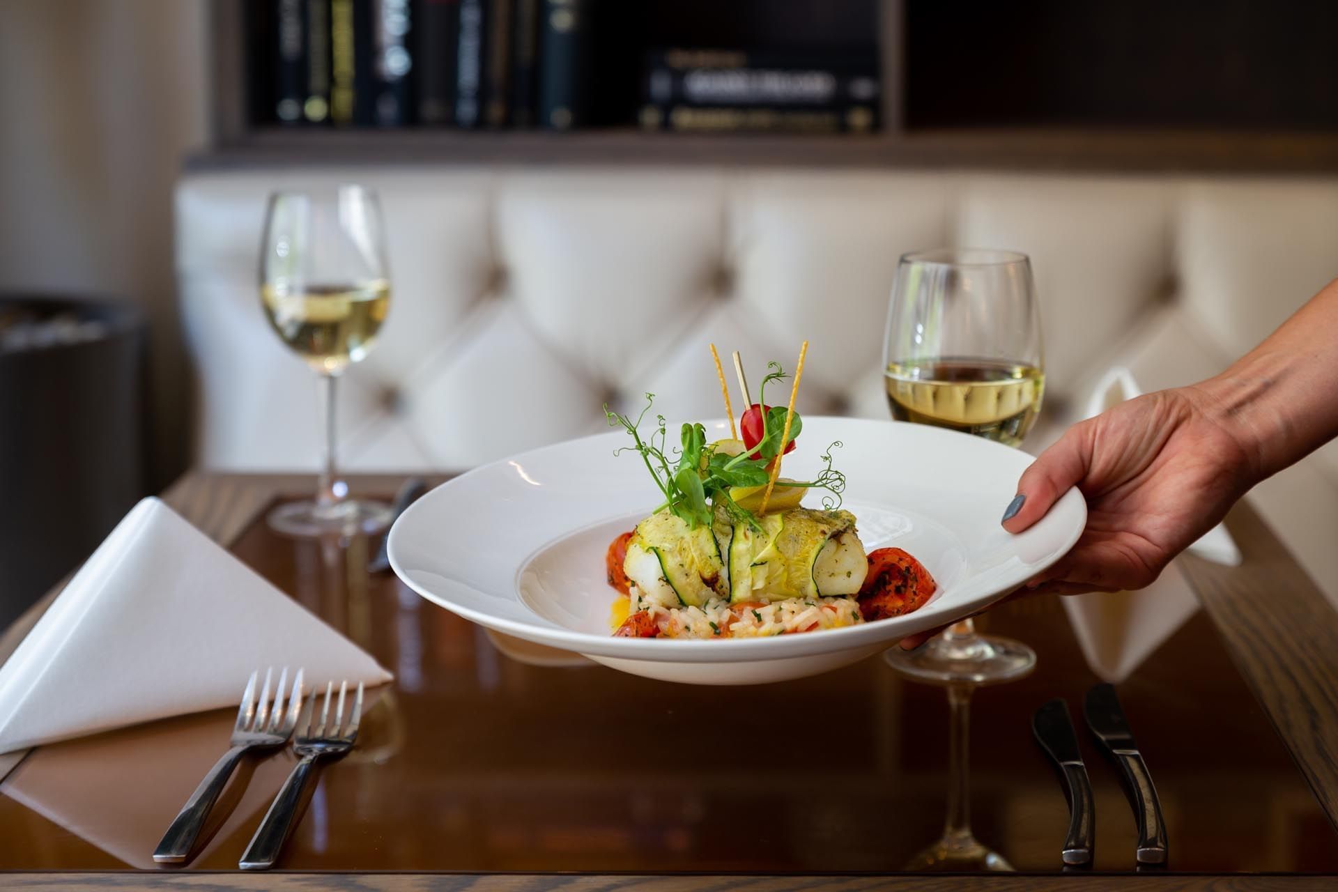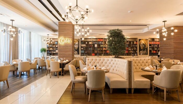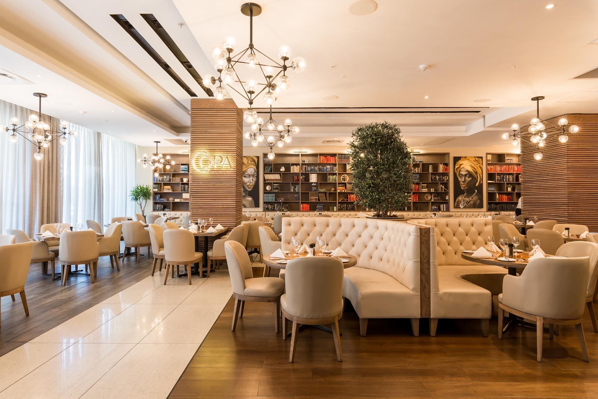 Eso es lo que puede esperar de nuestro moderno restaurante COPA. Aquí ofrecemos un menú contemporáneo con ingredientes locales y elaborado cuidadosamente a mano por nuestro chef ejecutivo Nigel Stemmet. La deslumbrante decoración e iluminación ambiental de COPA crean un ambiente romántico y acentúan los tonos crema y cobre. Además de nuestro menú a la carta, también servimos varios especiales durante la semana. Haga clic aquí para ver nuestra oferta.