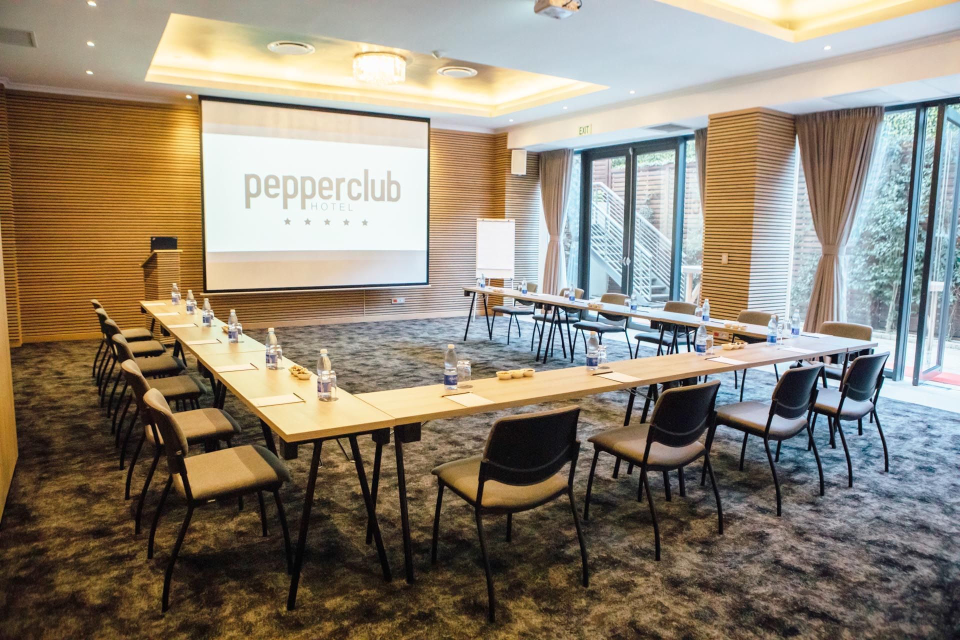 El Hotel Pepperclub se enorgullece de presentar nuestras lujosas instalaciones para conferencias, equipadas con paredes insonorizadas, cortinas opacas y cuatro televisores inteligentes.