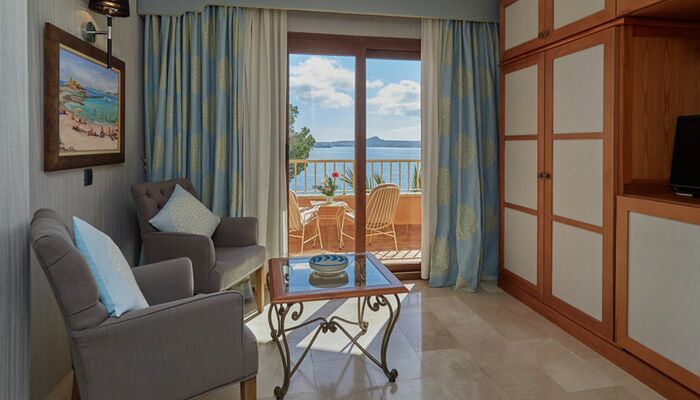 El hotel cuenta con 30 espléndidas Junior Suite con terrazas, todas ellas con vistas al mar y decoradas siguiendo un estilo mediterráneo moderno. En cada una de ellas el cliente puede disfrutar de amplios espacios, vistas a la bahía y todas las comodidades necesarias para hacer de su estancia un recuerdo inolvidable.