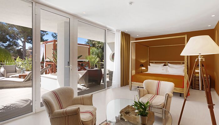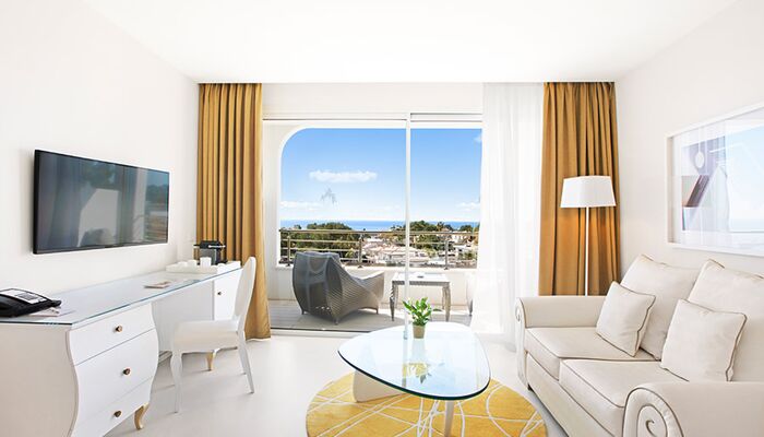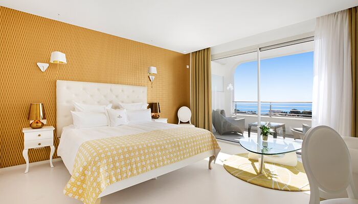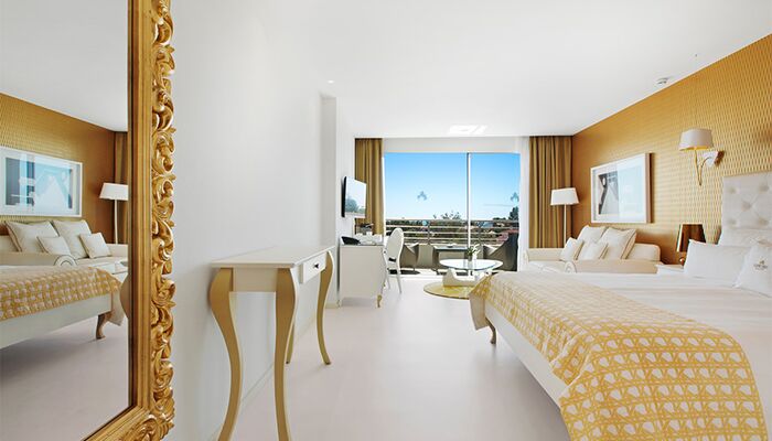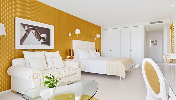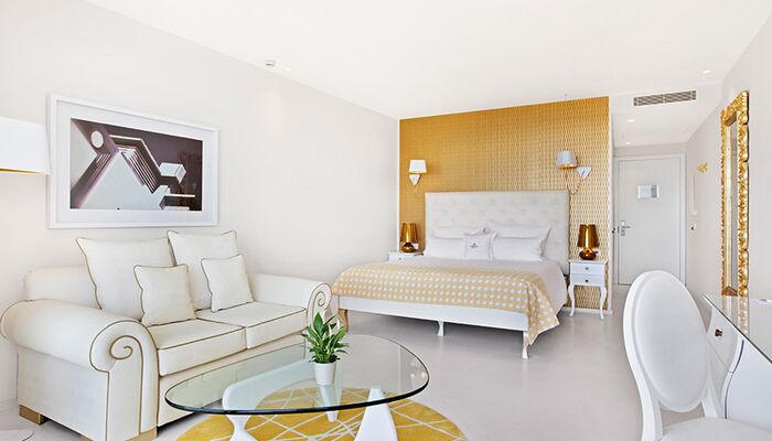 Con una interpretación fresca del diseño en Baleares, cada Suite Deluxe es acogedora y elegante, un oasis sereno, un lugar para quedarse con estilo. Una paleta de blanco sobre blanco mezclada con elementos dorados art decó crean un ambiente refrescante y una experiencia incomparable, mientras que cada habitación está perfectamente orientada para disfrutar de impresionantes vistas al mar.