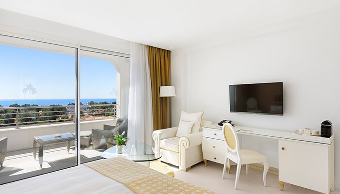 Con una interpretación fresca del diseño a las Baleares, cada suite Deluxe es acogedora y elegante, un oasis sereno, un lugar para alojarse con estilo. Una paleta de blanco sobre blanco mezclada con elementos art decó dorados crean un ambiente refrescante y una experiencia incomparable, mientras que cada habitación está perfectamente orientada para disfrutar de impresionantes vistas al mar.