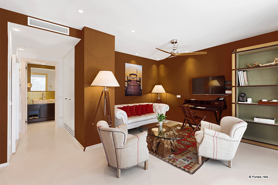 Abra la puerta de su Portals Hills Deluxe Suite. A diferencia de todo lo que haya visto en Mallorca, estas modernas suites lujosamente decoradas de 37 metros cuadrados a 40 metros cuadrados muestran una atención sin concesiones a los detalles tanto en el diseño de interiores como en las comodidades.